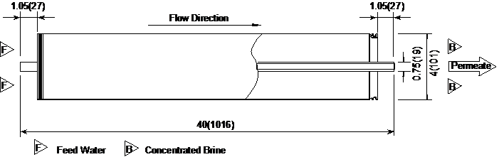 膜元件尺寸(單位為:英寸(毫米))